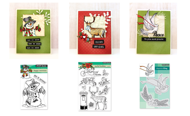 Whether you love cute, whimsical, or elegant styled cards, today’s video has something for everyone. With this versatile layout, Jill is getting inky with some of our newest stamps: 30-503 Happy Snowman, 30-497 Joyful Holiday, 40-643 Joy of Peace. |